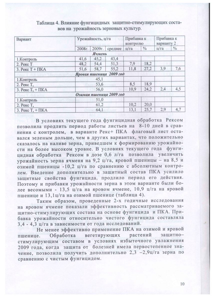 Исследования показали, что обработка препаратом приводит к снижению распространения патогенной микрофлоры на всех этапах роста и развития растения, улучшает налив зерна и увеличивает урожайность. Высокая концентрация микроэлементов в хорошо усваиваемой растениями форме - гарантия максимальной экономической эффективности применения ПКА.